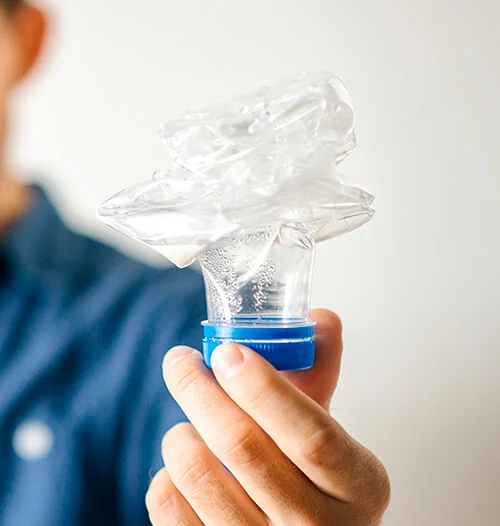 Por eso, contamos con nuestras dos botellas hechas 100% de plástico reciclado.